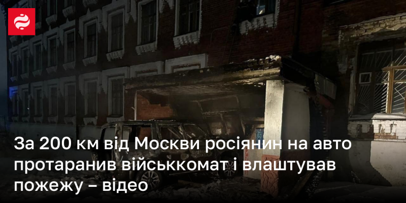 На відстані 200 км від столиці Росії, водій автомобіля влаштував наїзд на військкомат, спричинивши пожежу – дивіться відео.